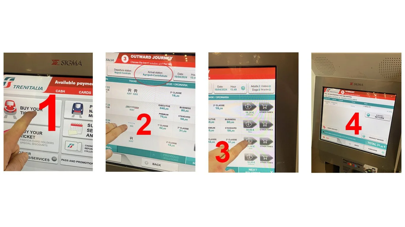 FIND EN BILLETAUTOMAT OG KØB BILLET TIL CA. 15€ pr person mod AGROPOLI CASTELLABATE